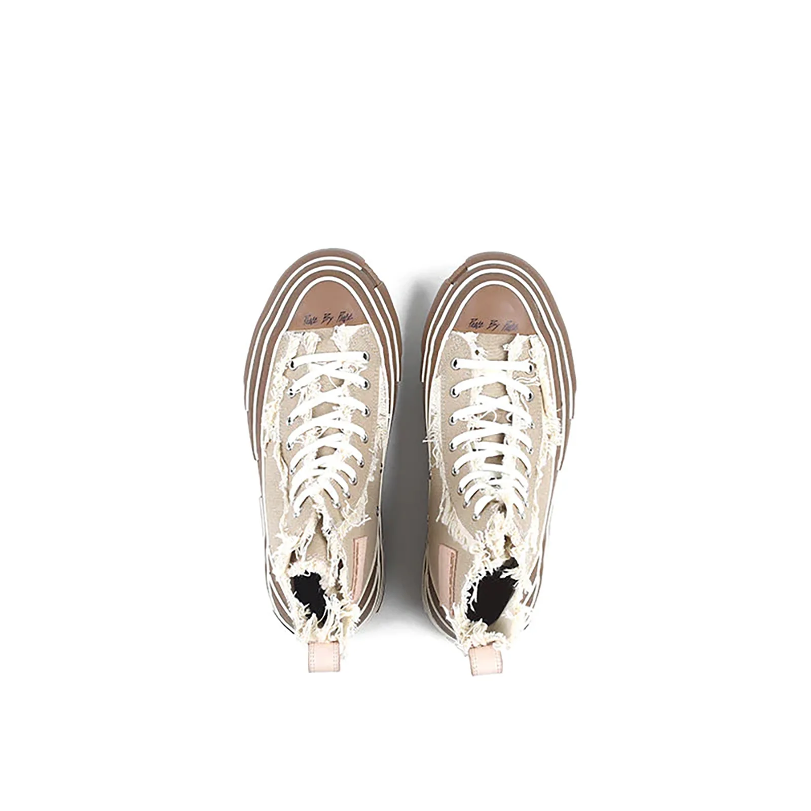 Embrace the essence of deconstructed design with the G.O.P. Highs Khaki, featuring irregular fringed edges and a high-top silhouette for a distinct aesthetic. With innovative vulcanized coverage, these sneakers offer simplicity without monotony, embodying the epitome of classic style with a bold khaki high-top design.