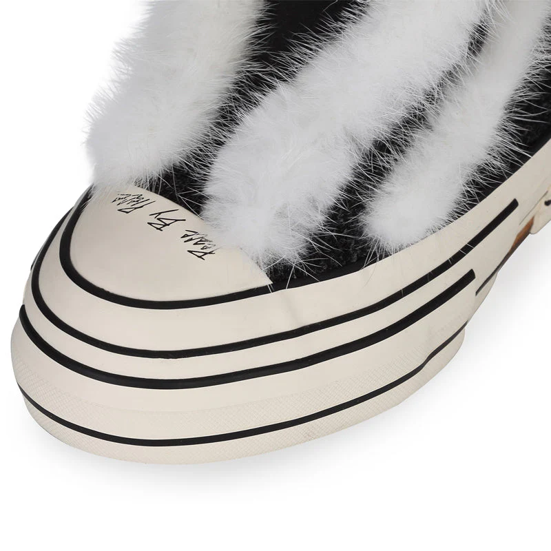 Embrace the essence of deconstructed design with the G.O.P. Highs winter warmers, featuring irregular fringed edges and a high-top silhouette for a distinct aesthetic. With innovative vulcanized coverage, these sneakers offer simplicity without monotony, embodying the epitome of classic style with a cozy winter high-top design.