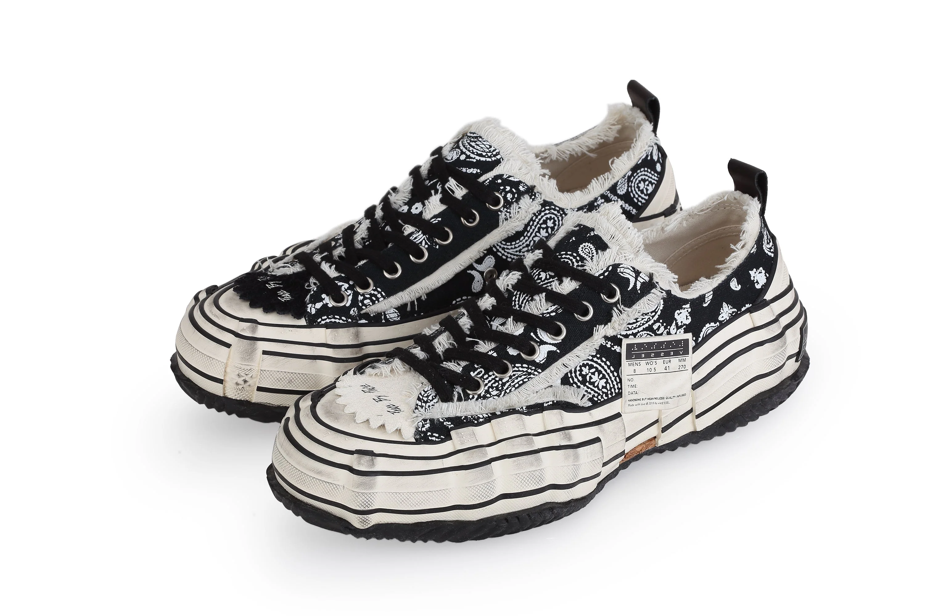 The G.O.P. Lows Paisley Distortion is a bold fusion of digital art and contemporary fashion. Featuring a unique distortion sole, these shoes offer a visually striking and modern aesthetic. The signature deconstructed sole not only complements the avant-garde design but also provides exceptional comfort and durability.